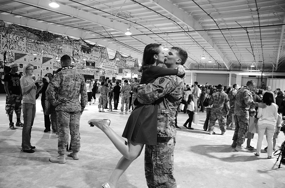 The Army likes to wait as long as possible to give details of when exactly the welcome will be, which can be annoying, but we get it. We finally found out that the Ceremony was going to be at the lovely hour of 1:00am! So we got there plenty early to scope the place out and get a good seat. And by some miracle, we ended up sitting right across from him! It was a long wait for them to come out, I think they like to tease everyone. Especially when they make them stand in formation and won’t let you run up and greet them right away! And my some other miracle, I was able to find him and zoom in as they walked out, and then not get trampled as everyone ran to their loved ones, and find a spot to clearly capture their reunion… phew!
